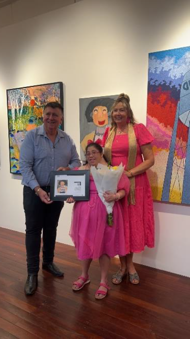 Paulette can now say she is an award-winning local artist! Using regular weekly supports to work on art projects, Paulette designed and painted portraits that won her the Patron Award. Working closely with her support worker Jane, Paulette likes to paint her family, friends, and work colleagues to show their happy faces and their smiles.
